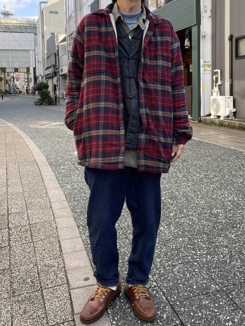 今日もお気に入りのリーバレーのフランネルフリースラインドシャツジャケットをポイントにしたスタイルです。
