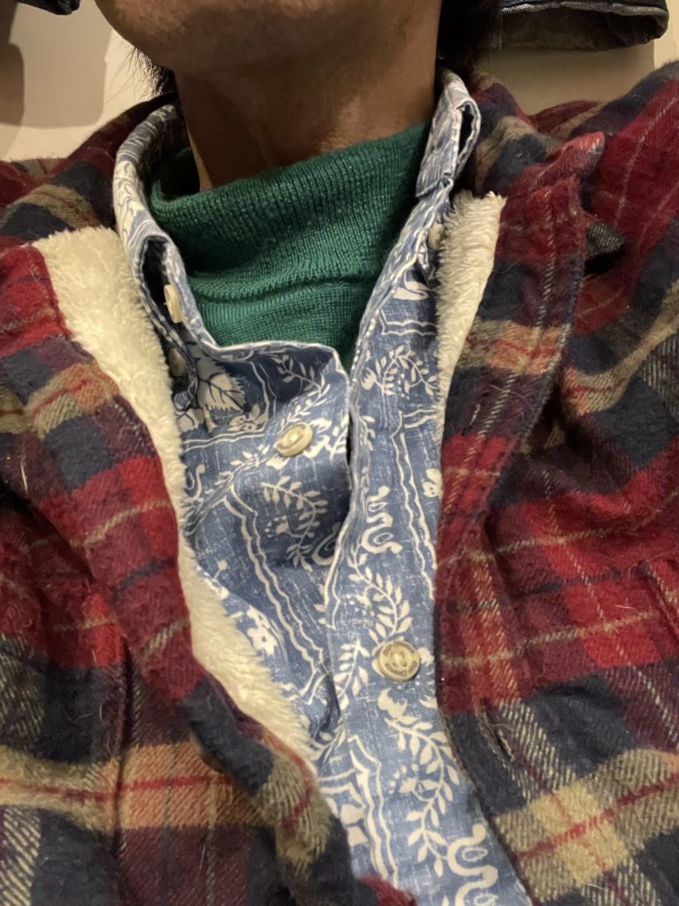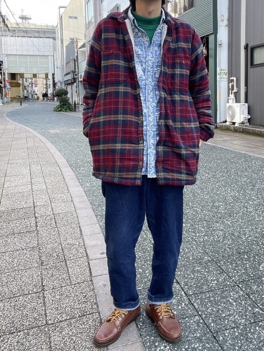 今日もアイルランド発、リーバレーのフランネルフリースラインドシャツジャケットをジャケット感覚で大きめにMサイズを着ています!