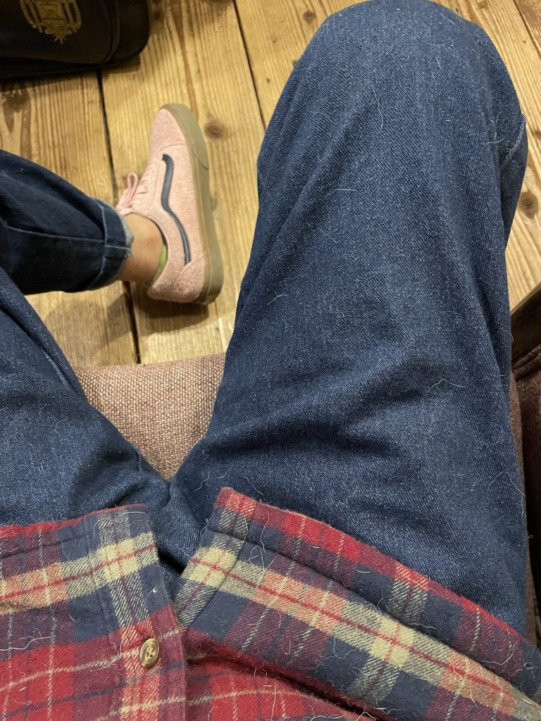 シューズはお気に入りのパンズ、オールドスクールのライトピンクスウェードです!