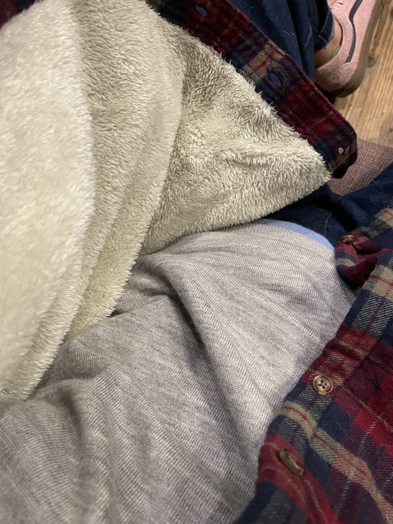 今日もお気に入りのリーバレー、フランネルフリースラインドシャツジャケットを着ています。