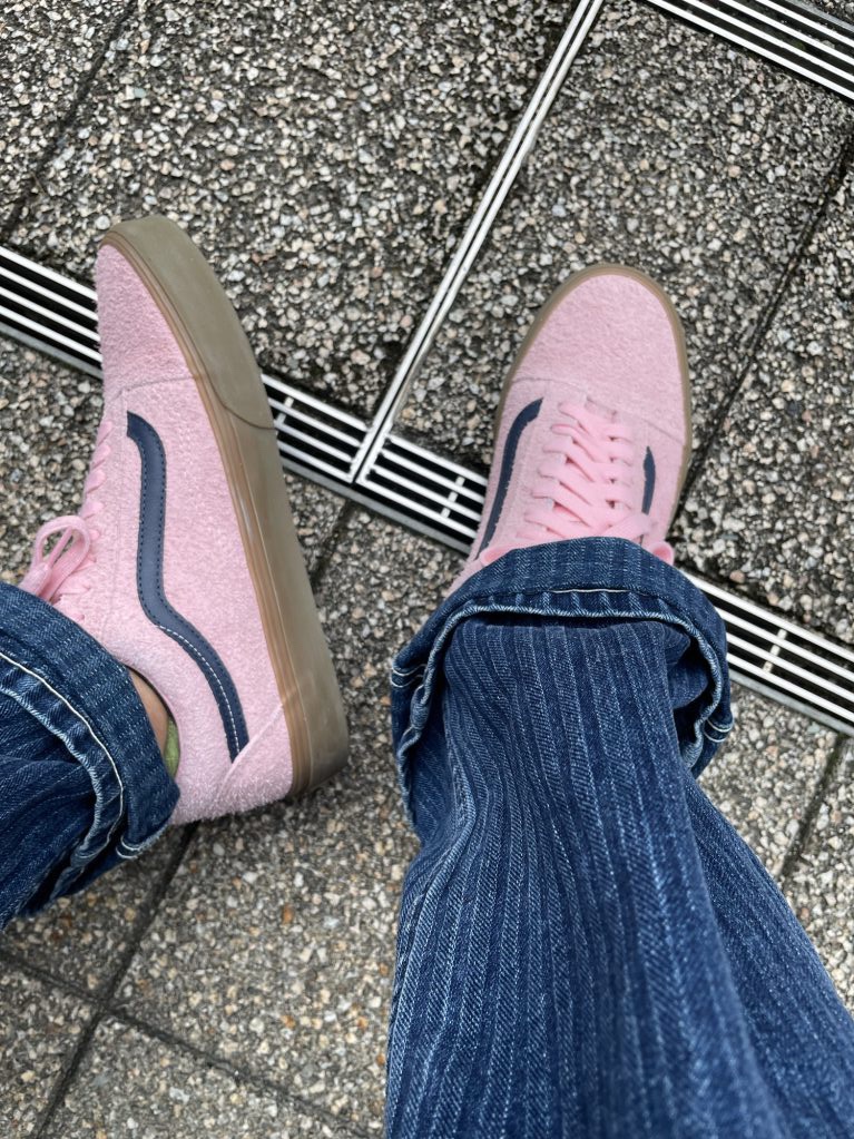 シューズは最近入荷しました、パンズ、オールドスクールのスウェードでライトピンクを履いています。