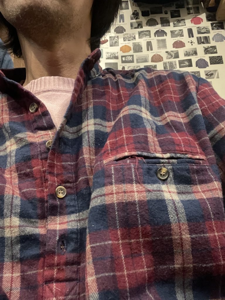左胸の玉縁ポケットも面白く、フランネルのチェックも昔僕が着ていたラルフローレンやペンドルトンに似ていて気に入ってます。