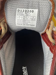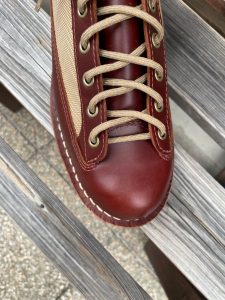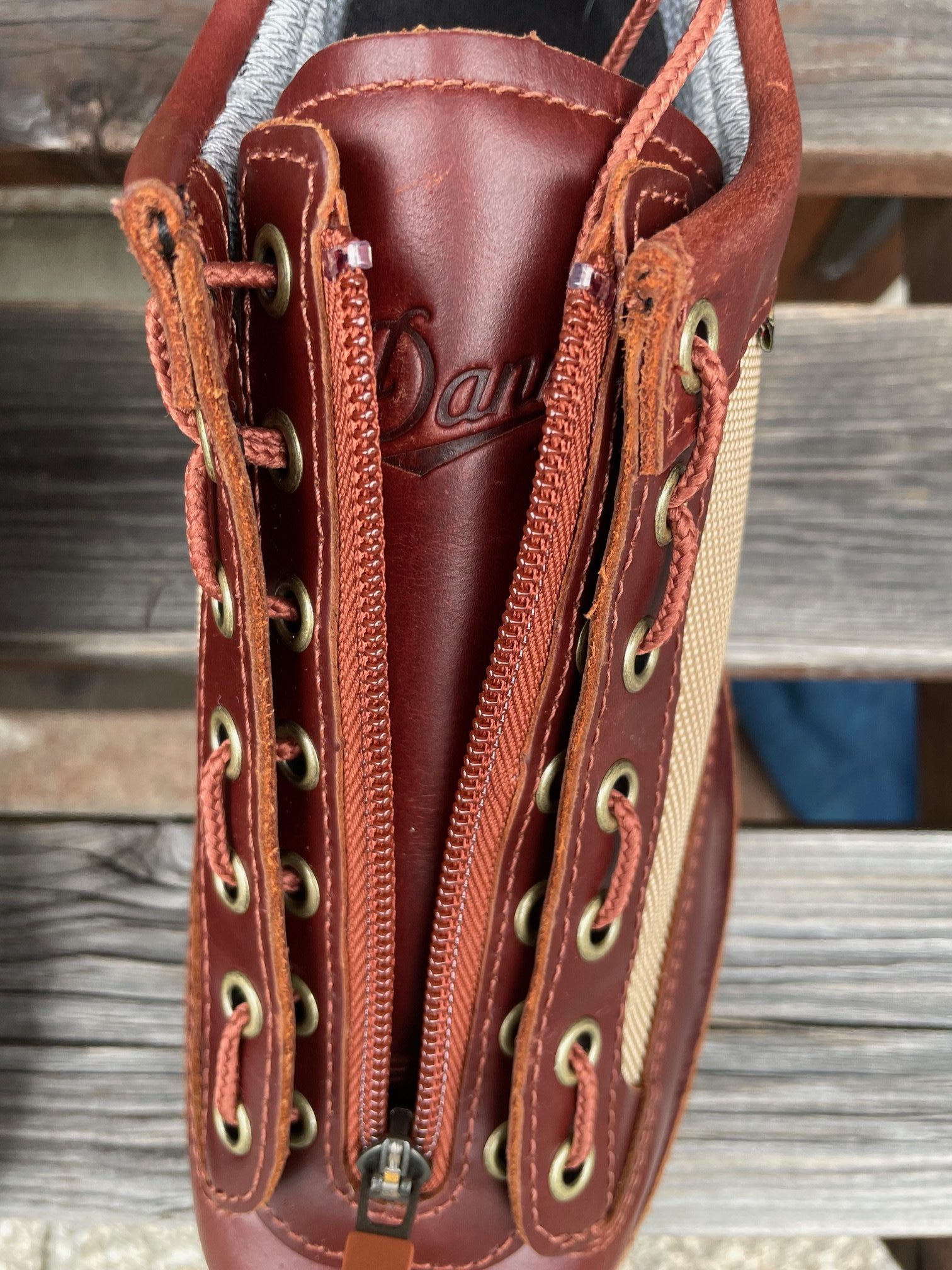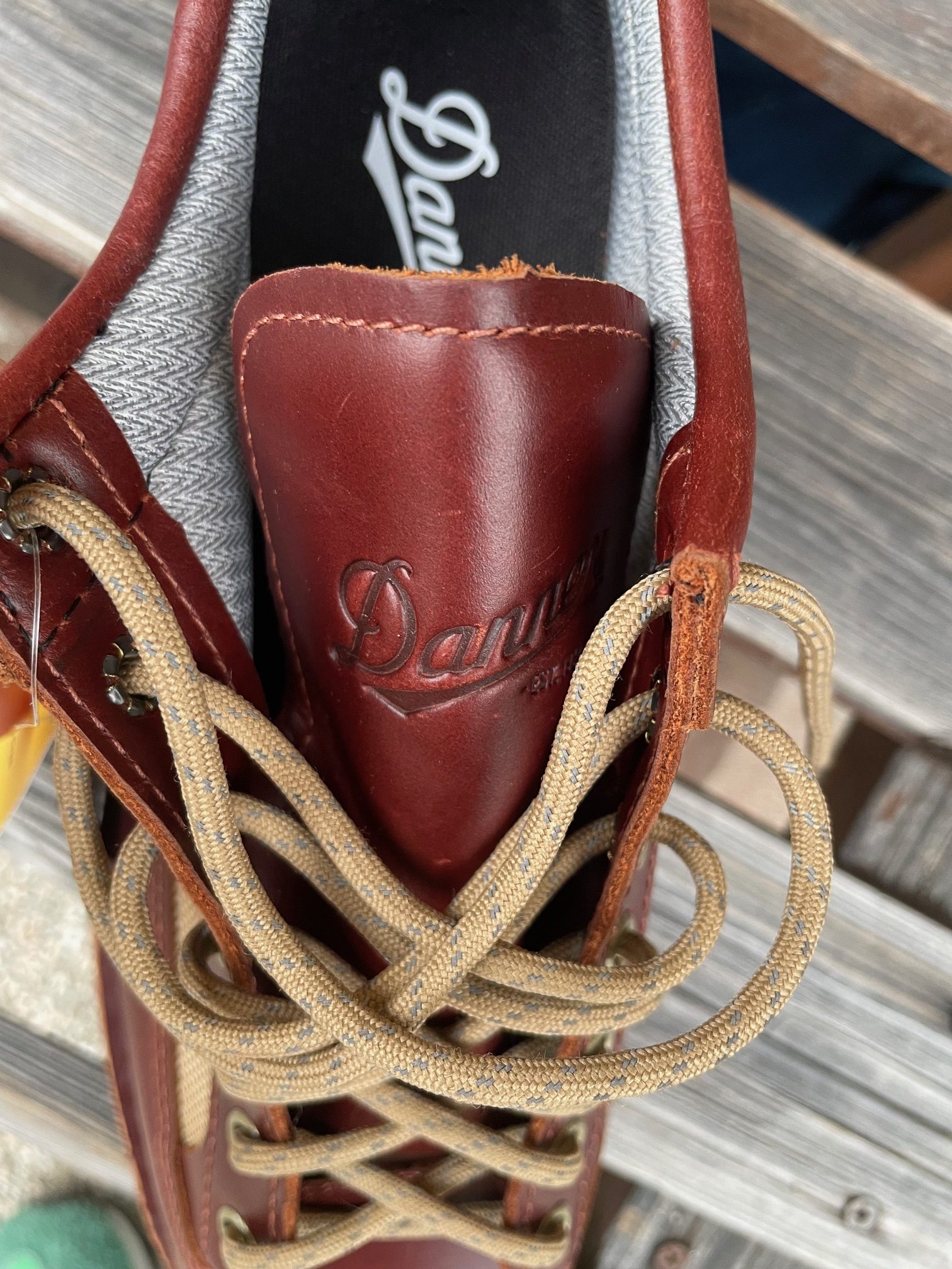 その他、トゥ部分が短くなり、クラシックな雰囲気で、紐を通すシューレースステイ(アイステイ)の幅が細くなり、ダナーのロゴが後ろの外側のサイドからヒール(後ろ)に変更されています。