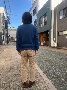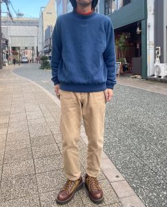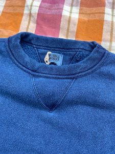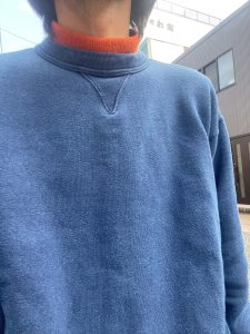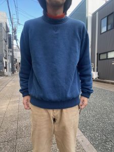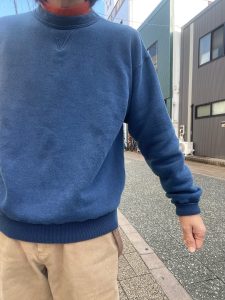 吊り編み生地特有の素材感にインディゴ染めを施したスウェットは、吊り編み生地特有の着心地と素晴らしい経年変化が楽しめる、究極のスウェットだと思います!!