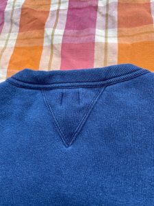 ビンテージのスウェットをベースに特徴的な首元のVガゼットは、前後ろ付いた両Vで、1950年代以前に見られた手間のかかる、はめ込み式です。