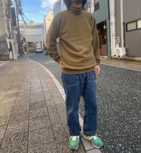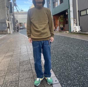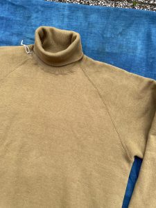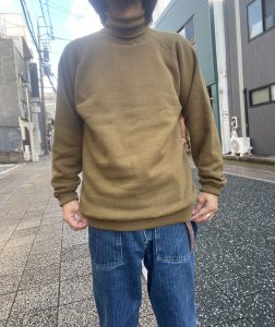 意外とあまり見かけない、タートルネックのスウェットは吊り編み生地特有の着心地に、首元も全くストレスが無く、タートルネック好きな方にはかなりお勧めのスウェットです。