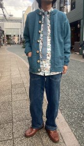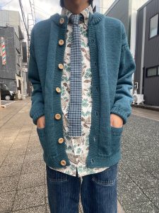 前開きなのでクラシックかつトラッドな着こなしできるのは勿論、様々な着方可能なカーディガンで現代の着こなしにも取り入れることが出来ると思います!