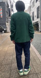 シルエットはややゆったり目のボックス型で着丈はフロントより、バックの着丈が5センチ長めとなっています。