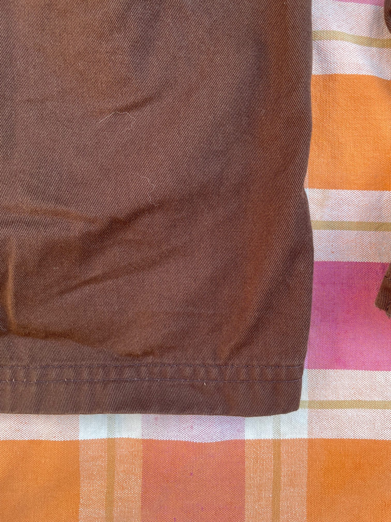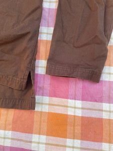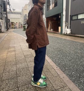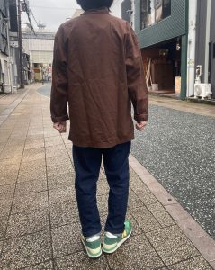 カラーは、ナツメグで赤みのあるブラウンで、板チョコの様な色目となっており、コットンツイル特有の上品な雰囲気となっており、洗いがかかっているので、着易いです。