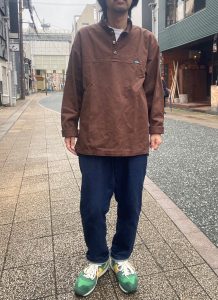 また、貴重なアメリカ生産もポイントで、秋口から春先まで活躍してくれるのは勿論、袖をロールアップすれば真夏以外活躍してくれる万能なプルオーバーの長袖シャツだと思います!!
