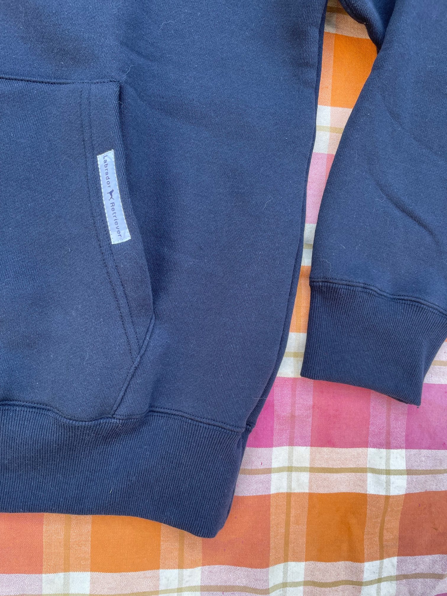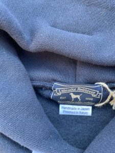 今回のスウェットは、ラブラドールが1990年代まで、採用していた、ヘビーウェイトな100%コットンのボディにフードにはヘリンボーンの平紐が付いたスペシャルバージョンの犬ロゴスウェットパーカーとなっています。