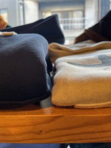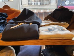 <今回のポイントでもあるヘビーウェイトの厚みですが左が今回のスペシャルパーカー、右側が通常のラブラドールオリジナルのスウェットパーカーの厚みです>