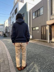 やや身幅ゆったり目、着丈もやや長めのシルエットに今回のヘビーウェイトの生地を使用したスウェットパーカーは、90年代の雰囲気満点です!!