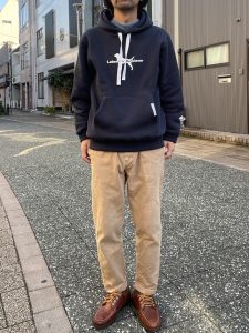 現在、通常展開されているミディアムウェイトの裏起毛でフードの紐が付いておりませんが、今回スペシャルバージョンで久しぶりに復刻、登場しています。
