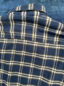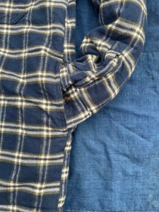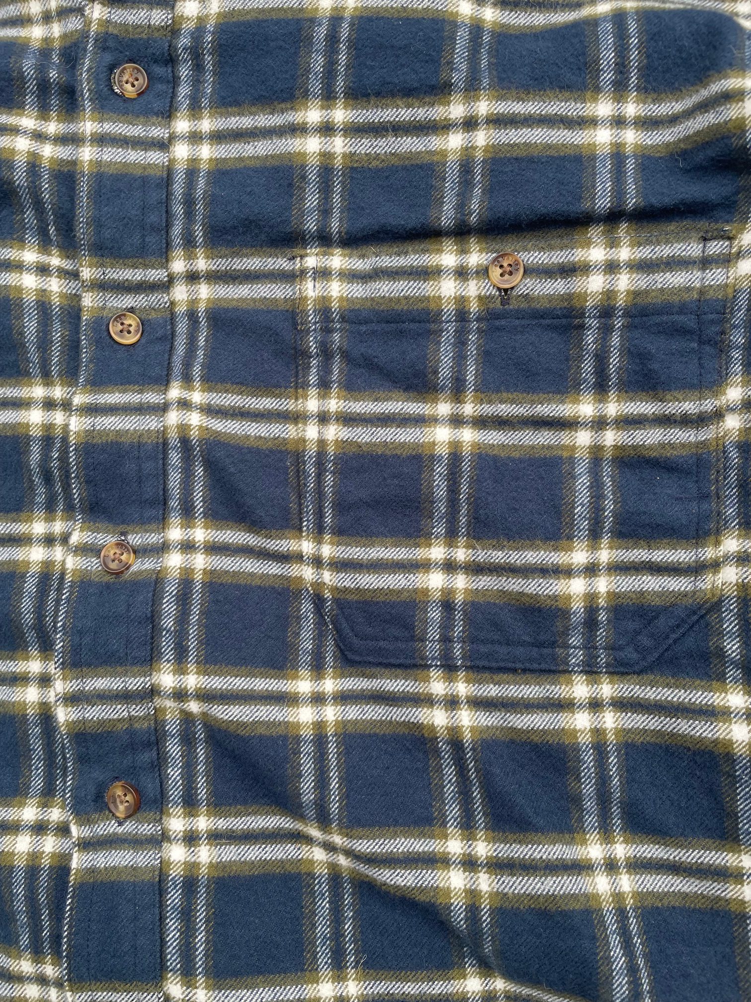 カラーは、やや青みのあるネイビーベースにオリーブに近いグりーン、ホワイトが混ざったチェックとなっています。