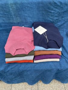 *2025年秋冬、ムーンキャッスルから、同社の定番、オーストラリア産、エクストラファインメリノウールの糸を使用したモックネックの長袖(ニット)が今季も入荷致しました!
