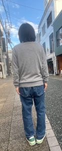 厚みも12ゲージと呼ばれる、やや薄手の厚みとなっていますが、薄すぎないので1枚で着てもニット本来の暖かみのある表情です。