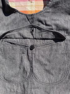 ポストオーバーオールズおなじみのダブル仕立てになっています。