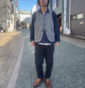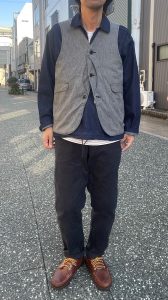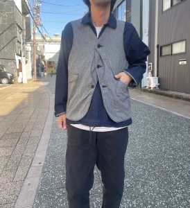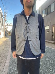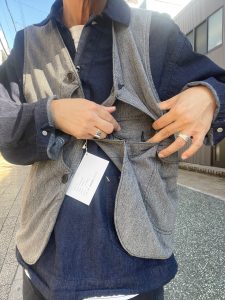 ポストオーバーオールズならではの手間ひまかけたオススメのベストです。