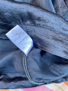 素材には,今季デザイナー大淵氏が提案している、アセテートサテンと呼ばれる、木材パルプなどに化学的結合させて作られる半合成繊維は、とろみとドレープ感があり光沢感のある生地に皴加工が施された、ファッション性の高い素材を使用しています。