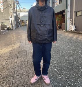 今回のデザインのベースは、ポストオーバーオールズではお馴染みのNAVY PARKAで、元々は1940年代のアメリカ海軍の作業用ジャケットになっており、ポストオーバーオールズが無駄なディテールを排除してアップデートしています。