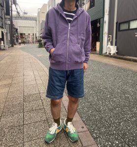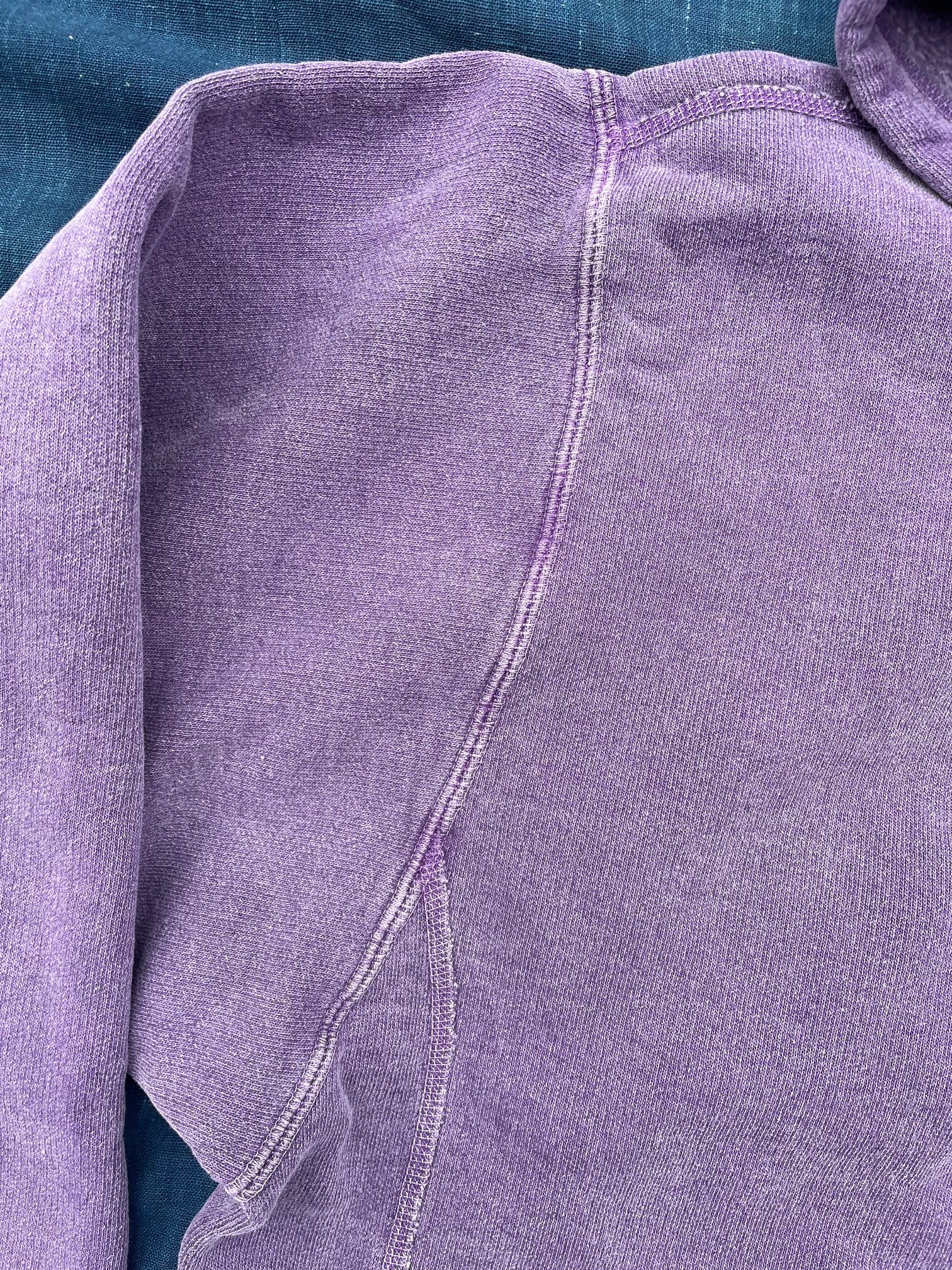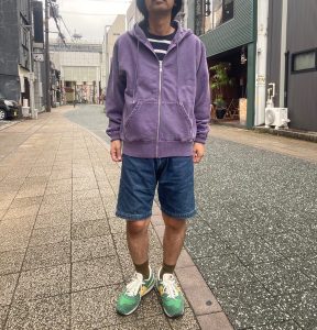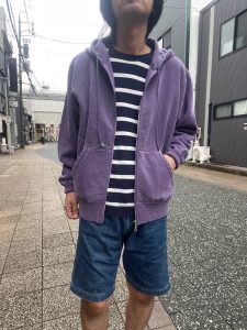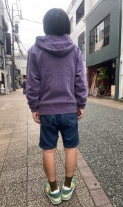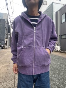 カラーは、パープルで、ピグメント染めならではのフェード感のあるくすんだ色目となっています!