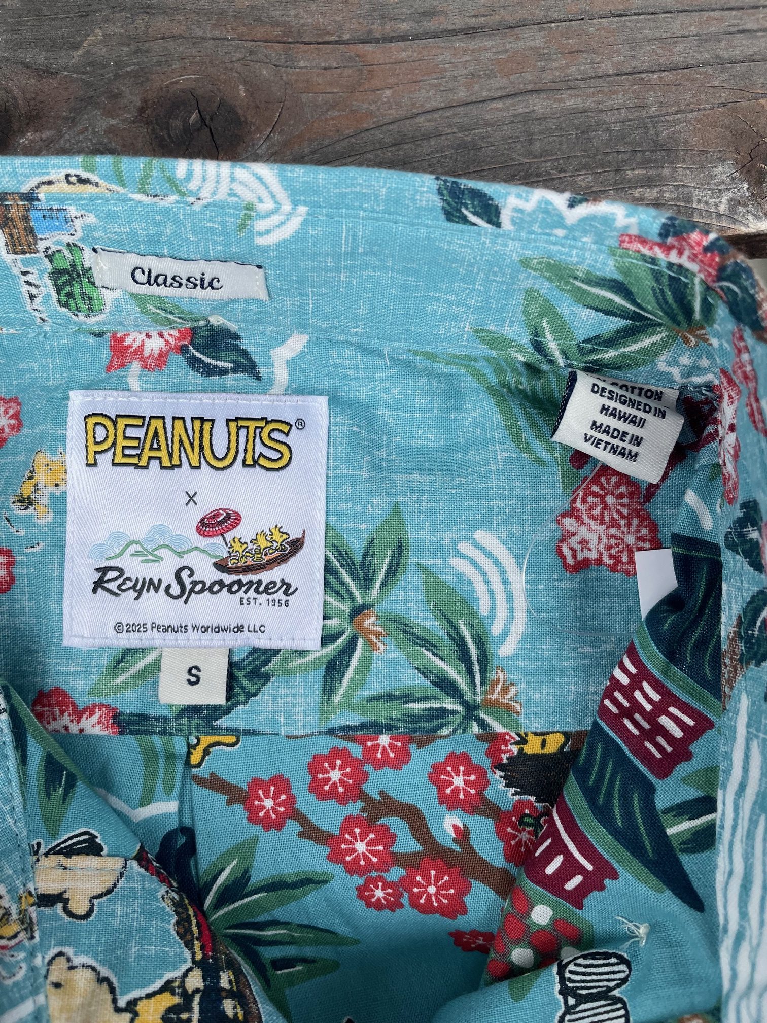 REYN SPOONER-6974 PEANUTS IN JAPAN-PULLOVER S/S SHIRT-AQUA