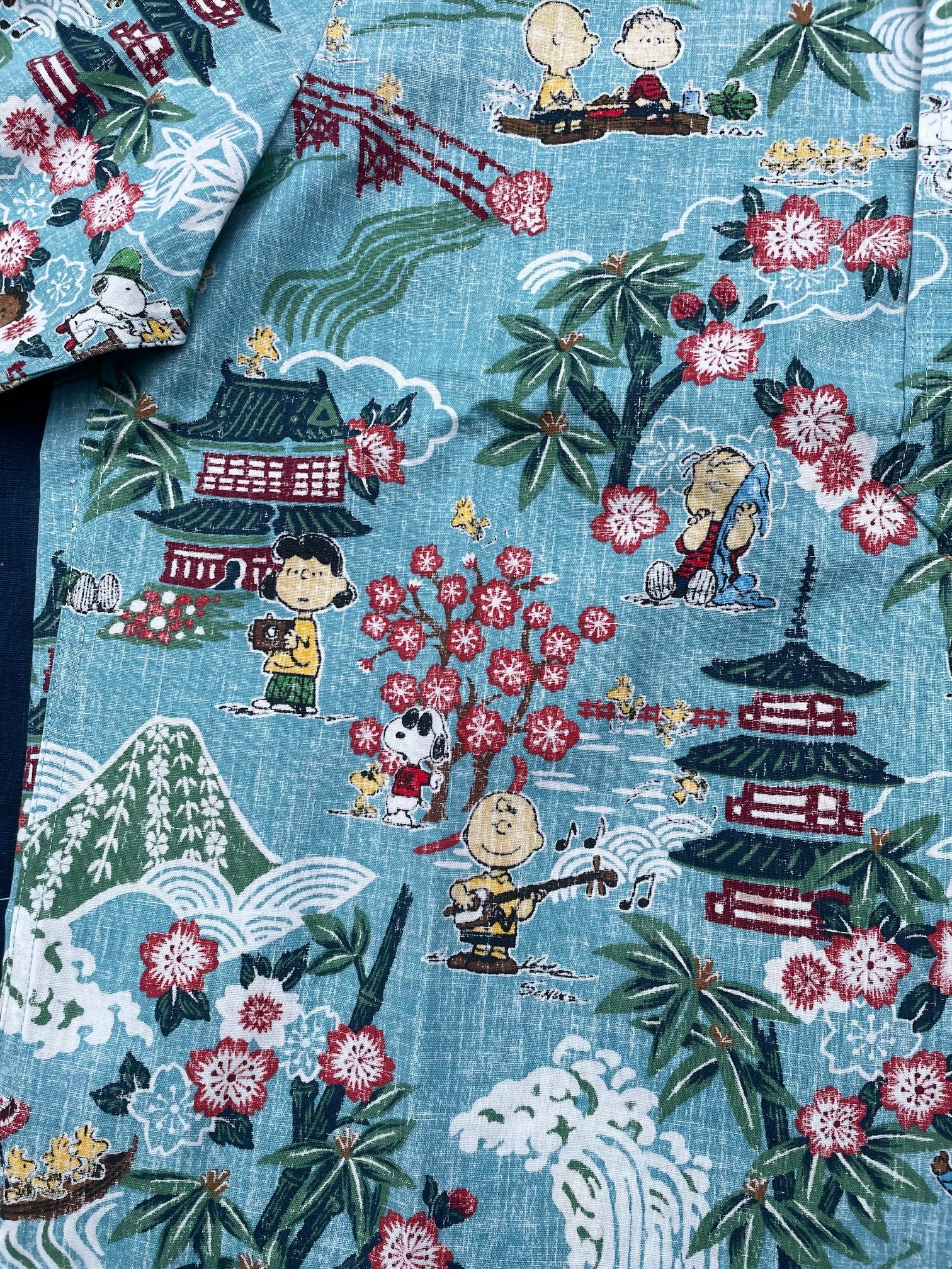 柄は、説明不要の世界的に有名なアメリカ、ピーナッツ社とのコラボレーションのスペシャルな限定アロハシャツとなっています。