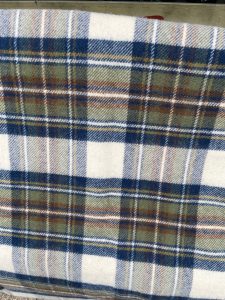 カラーは、イギリス伝統のタータンチェック、定番スチュワート系でミューテッドブルースチュワートで、裏のポリエステル生地は、オリーブが採用されています。