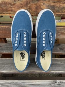 今回の、AUTHENTIC GOREは、バンズ設立当時から登場している、名品で元々はテニスシューズとして開発されたモデルでもあるオーセンティックをベースにシューレースを外し、シュータンの裏の両サイドにサイドゴアブーツでお馴染みのゴア(伸縮性のあるゴム)を採用し、紐を結ばずに履けるスリッポンタイプとなっています。