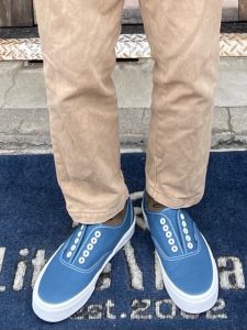 <定番、オーセンティックにシューレースを外したスリッポンタイプです>